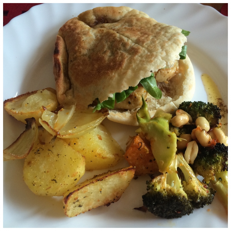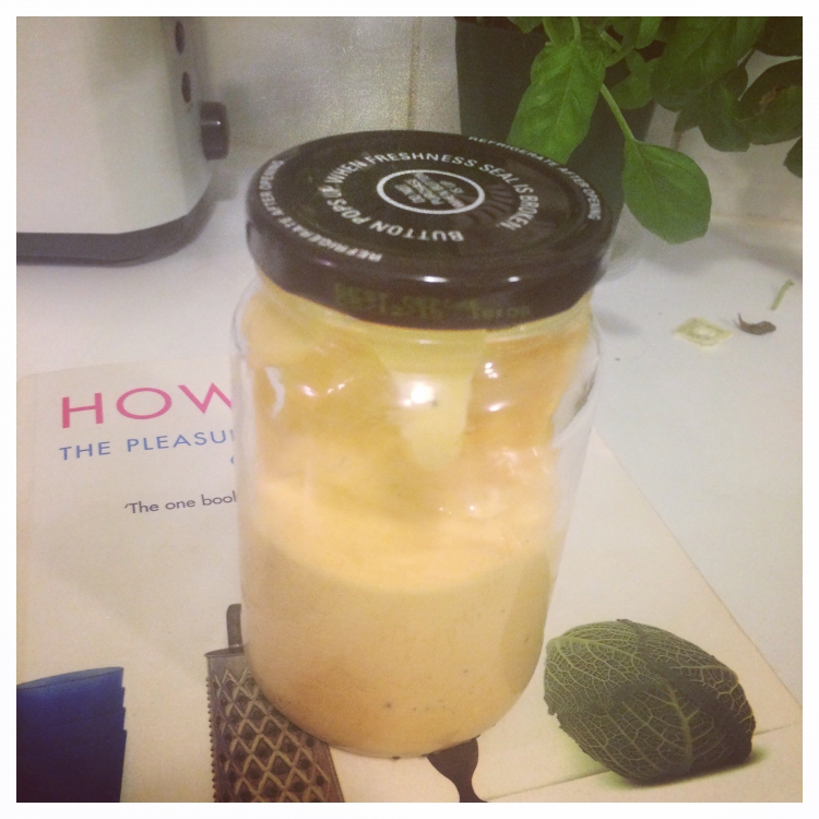 Nigella says to start with two room temperature egg yolks with salt, beat them for a few minutes and then slowly start adding sunflower oil. I probably got 100ml of oil incorporated (going sloooowly) before it curdled for the first time. Nigella suggests adding a drop of boiled water to fix curdling. It didn't work for me. I started again with another room temperature egg yolk in another bowl, beating. I held the bowl with the curdled mess above the second bowl, allowing the separated oil to drip slowly into the fresh egg. Eventually I moved to spooning the curdled mess in with the fresh egg too, things going okay, confidence increasing again. I then went back to my original jug of oil to continue adding from where I stopped when it curdled the first time. Things going well, oil dripping slowly from jug to bowl. And then... curdled. This time I added another egg yolk, straight to the bowl and beat and beat and beat. It thickened, and I thought okay, I have finally triumphed. Started adding more oil... curdled. Wondering why anyone bothers with this. Another egg yolk, straight in the bowl, beating, beating, beating, beating - finally a thick ointment. Thoroughly chastened, I chickened out of adding any more sunflower oil and started slowly dripping extra virgin olive oil in the ointment. I definitely didn't put enough, stopping with my thick yellow paste. I then beat in salt and lemon juice. The lemon juice lightened it to more of a butter yellow, but it was still brighter in colour than any mayonnaise I've seen (probably because I used so many yolks!)